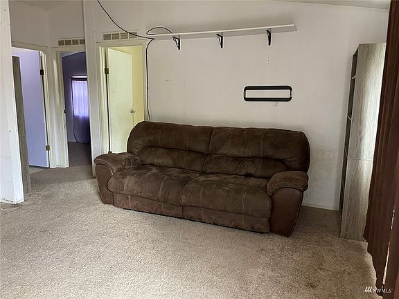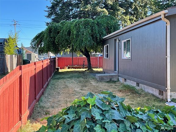 In town Manufactured doublewide home on it's own 60x100 foot lot. Fully fenced for pets. 3 bedrooms 2 full bathrooms with one of the bedrooms as primary suite with full bathroom. Open floor plan, no wasted hallway spaces. Very open with living & kitchen areas blend into one another still the kitchen has a large dining area . Built in 2000 it sits on a concrete block foundation. The lot is very useable with garden space in the NW corner. On site parking is availalbe through large gated area off alley accesses. There are 4 sheds with one used as childrens club house. The home needs carpet & paint. Priced right for the minor work needed.