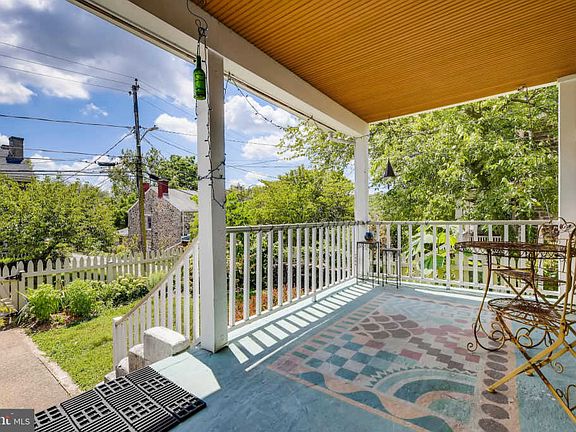 Rarely Available Original Stone Hill Semi-Detached Stone Home on Corner Lot! This special home offers so much! From the moment you walk through the front gate your senses will be delighted by the colorful flowers and the well-established landscaping that abounds. Up a few steps to a large front porch where you can sit and enjoy peaceful views of your garden and the charming stone homes in this historic neighborhood. As you enter you will notice the original beamed ceilings, the brick woodburning fireplace and the original random width pine floors throughout the living room and dining area. The kitchen has a vaulted ceiling, exposed brick walls and a second brick fireplace. Upstairs you will find two bedrooms on the second floor with a renovated bath and walk in closet. The entire third floor is a surprising bonus room, and can be used as a 3rd bedroom or even a workshop as it is currently used. It is light and bright with skylights and good storage. Off the kitchen you will find a mud room with convenient laundry and extra storage. A second full bath has been added on the first floor. Out the back door is a patio for grilling-grill included, a shady garden and a side yard with a large umbrella that conveys for your enjoyment. The yard is fully fenced and parking is available in front or in back of the house. Stone Hill is a great community not to mention it's in walking distance to all that Remington and Hampden has to offer. Easy access to I-83 makes commutes downtown a breeze and the very green Druid Hill Park is just a five minute bike ride away. Only five minutes to JHU too!