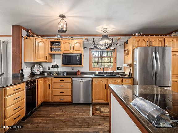 On a peaceful cul-de-sac in Oceanview, you'll enjoy your 2,500 sqft home with a large entertainment room with four windows, and wet bar. Also on the main floor are living and dining rooms, a half bath, and a family parlor with wood-burning stove, and of course the half-bath, laundry, and the kitchen with a reverse osmosis water filter. Throughout the downstairs are original oak floors except LR.Appliances stay as does the 60" 3D TV. Upstairs are 3 bedrooms plus a grand master bedroom, and the two full baths. The Alaska state energy program awarded this house 4-1/2 out of 5 stars after improvements in insulation, heating, and new window panes. A tankless hot water was an earlier upgrade. On arrival you enjoy seeing mature evergreen and birch, and a rock retainer wall driveway leading to the oversized garage and built-in workbench. The nearly quarter acre plot allows home setback from the street and an ample, well-treed, south-facing backyard. Out the entertainment room door is the cedar plank 16x20 deck. The separate, insulated 10x16 work shed has natural gas heat and power, and is perfect as a wood shop, projects needing audio isolation, or most hobbies and storage. An attic is accessed by stairs from the garage. A garden shed having a full-cord wood storage rack, protects your mower, blower and the rest. With the garage attic storage, the shop building and the garden all year, and still park a third out of the way in the driveway notch. There is no home owners' association. Acquire this New England style home on a local-traffic-only, safe and friendly street for your family.