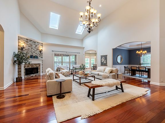 Cozy fireplaceLarge quartz islandTranquil half-acre lotMain-level master suiteUpstairs bonus roomOpen floor planPrivate screened porch