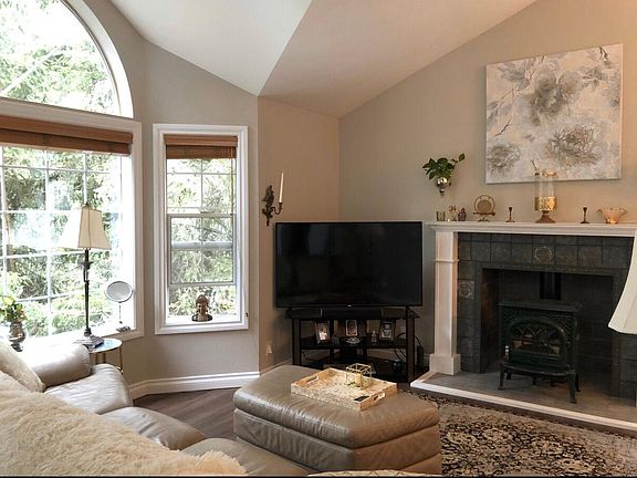 House features large vaulted ceilings, designer arches, push button gas fireplace, large arched windows, separate dining area, large kitchen and skylights. A split level for privacy of the two spare bedrooms apart from the master. It is located high up in the South Hills far away from any through traffic and steps away from the Ridgeline trail system. Light pours in from the window and it is surrounded by trees, lush greenery, birds deer and wild turkey. Low maintenance yard, extra large two car garage, washer and dryer already installed in the downstairs bath. Owner pays for renters insurance and HOA. Tenant pays for Eweb, gas, trash and Internet/cable if needed
