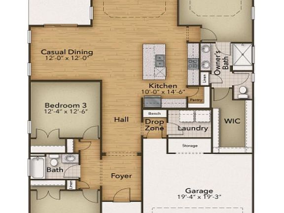 The Shorebreak is the perfect balance between outdoor living space and a coastal-inspired interior, encouraging you to slip off your sandals and relax. Starting at 1,938 heated square feet, this home offers three bedrooms, two bathrooms, and a two-car garage. Step in from the Shorebreak’s covered front porch to find an open kitchen, dining, and great room area. Breeze through sliding glass doors onto a 179 square foot covered porch, ideal for warm summer evenings or afternoon get-togethers. Whether you’re looking for an abundance of counter space, added seating, or a more intimate gathering area, this model’s options will serve as the solution. Through the foyer, you’ll find a large drop zone and laundry area while you unload beach accessories or sand-filled clothes. Drop-off beach chairs in the convenient storage space just inside the garage, as well.  Beyond the open living space, find a stunning master suite complete with a tray ceiling, enormous walk-in closet, double vanity, and a seated shower.