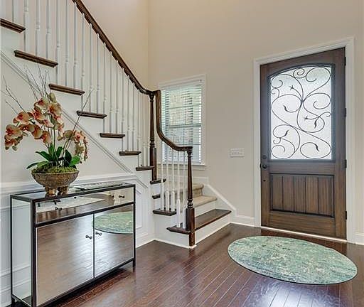 The only 2 story foyer plan we offer in Eppington; The Alexander with Juliette balcony. Guest suite on the main level, Great Room open to the kitchen which features an enormous island, eat in Breakfast area, and walk in pantry with wood shelving which leads through the butler's pantry into dining room. Expansive owners retreat with spa-like owner's bath and 3 additional bedrooms and 2 full bathrooms on the second level as well as Game Room. An unfinished basement with pre plumbing for future full bathroom and studs placed for future bedroom and walk in closest leaves lots of possibilities. All of this in a full brick home on a large wooded cul-de-sac homesite.