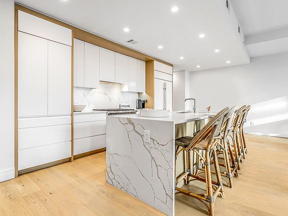 Residence 401 is a newly-built 2,097 square-foot open-concept home with 3 generously sized bedrooms, 3.5 bathrooms, and a 224 square-foot private, detached rooftop patio cabana with sweeping views of both the Manhattan and Jersey City skylines, and a private deeded parking spot in the building’s on-site parking garage. Luxury finishes include high ceilings, floor-to-ceiling windows, 7.5-inch European white oak hardwood plank floors, a large, suburban-sized designer kitchen with center island, a walk-in pantry, a full laundry room with built-in sink, a five-fixture primary bath, and abundant closets throughout. The designer kitchen appliance package includes Sub-Zero refrigerator and wine refrigerator, Wolf gas range, oven and microwave drawer, and Bosch dishwasher. The in-residence laundry room is equipped with a Bosch washer dryer and built-in sink. Wonder Lofts is newly constructed luxury, loft style 83-unit condominium building, built to LEED Gold standards, within the meticulously restored Wonder Bread Factory in Hoboken, NJ. This full-service, doorman condominium offers a world-class suite of shared amenities comprising 14,400 square feet of indoor and outdoor spaces including: a rooftop infinity-edge pool overlooking the Manhattan skyline, with an adjoining beautifully landscaped outdoor lounge which offers a circular bar, gas barbecue grills, dining areas, and fire pit. Other amenities include an indoor Residents’ Lounge that opens to a large landscaped outdoor patio and common garden, a children’s playroom and art center, a game room, a screening room, a full gym with yoga/flex studio, and a pet grooming room. Wonder Lofts offers building-wide, secure high speed Wi-Fi, a private and programmable “Latch” smart home entry system, and a building access control system that offers automated package delivery notification. The onsite parking garage has private and common electric vehicle charging stations, parking spots with private storage units and tandem parking spots, as well as a bike storage room. Each residence is complete with a parking spot included and has either an attached terrace, patio, or backyard, or a detached private rooftop cabana with NYC skyline or sunset views. Rooftop cabanas, patios, and backyards include electricity and gas.