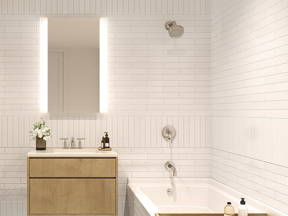 Residence 215 is a newly-built 1,205 square-foot open-concept home with soaring ceilings, 2 generously sized bedrooms, 2 bathrooms, and a western, courtyard facing 564 square foot private garden patio with gas, water and electric, in-unit laundry with built-in sink and a private deeded parking spot in the building’s on-site parking garage. Luxury finishes include high ceilings, floor-to-ceiling windows, 7.5-inch European white oak hardwood plank floors, a large, suburban-sized designer kitchen with center island, a walk-in pantry, a full laundry room with built-in sink, a five-fixture primary bath, and abundant closets throughout. The designer kitchen appliance package includes Sub-Zero refrigerator and wine refrigerator, Wolf gas range, oven and microwave drawer, and Bosch dishwasher. The in-residence laundry room is equipped with a Bosch washer dryer and built-in sink. Wonder Lofts is newly constructed luxury, loft style 83-unit condominium building, built to LEED Gold standards, within the meticulously restored Wonder Bread Factory in Hoboken, NJ. This full-service, doorman condominium offers a world-class suite of shared amenities comprising 14,400 square feet of indoor and outdoor spaces including: a rooftop infinity-edge pool overlooking the Manhattan skyline, with an adjoining beautifully landscaped outdoor lounge which offers a circular bar, gas barbecue grills, dining areas, and fire pit. Other amenities include an indoor Residents’ Lounge that opens to a large landscaped outdoor patio and common garden, a children’s playroom and art center, a game room, a screening room, a full gym with yoga/flex studio, and a pet grooming room. Wonder Lofts offers building-wide, secure high speed Wi-Fi, a private and programmable “Latch” smart home entry system, and a building access control system that offers automated package delivery notification. The onsite parking garage has private and common electric vehicle charging stations, parking spots with private storage units and tandem parking spots, as well as a bike storage room. Each residence is complete with a parking spot included and has either an attached terrace, patio, or backyard, or a detached private rooftop cabana with NYC skyline or sunset views. Rooftop cabanas, patios, and backyards include electricity and gas.