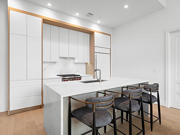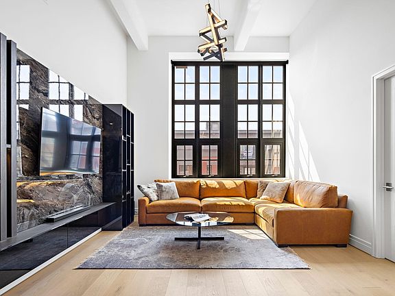 Introducing a newly constructed, sunlit, and spacious two-bedroom, two-bathroom loft with a private roof top terrace and deeded parking space, located in the center of Hoboken! This loft has soaring 16 ft ceilings, massive windows, an oversized living room and a separate dining area. The sleek and modern chef's kitchen features a center island, Sub-Zero refrigerator, Wolf gas range oven and microwave drawer, Bosch dishwasher, and quartz countertops and backsplash. It seamlessly flows into the living area making it perfect for entertaining. The primary bedroom comfortably fits a king-sized bed, end tables, and dresser. It features a custom walk-in closet and a marble ensuite spa bath with a frameless glass shower, deep soaking tub, and double sink vanity. This residence has 7.5-inch-wide white oak plank flooring, custom oak entry door and trim, smart door entry system Latch, high-efficiency central A/C, private laundry room with an in-unit washer dryer and built-in sink. Amenities include a beautifully landscaped rooftop lounge with spectacular Manhattan skyline views featuring an infinity-edge pool, fire pit, gas barbecue grills and circular outdoor bar with a big screen TV. Other amenities include a children's playroom, an art center, grand screening room lounge with gaming capability, 24-hour gym with yoga/flex studio, game room, automated package delivery system, common laundry room, private on-site indoor parking garage with private and common Electric Vehicle charging stations, storage, bike room, and pet grooming area. This full-service, doorman condominium offers building-wide secure high-speed Wi-Fi.