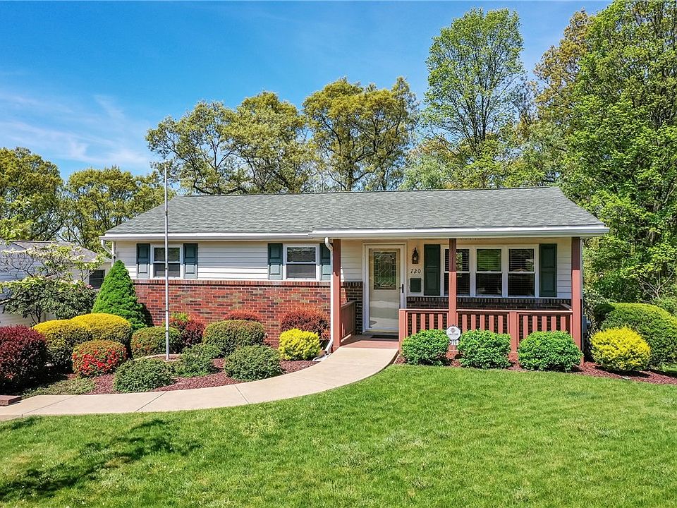 Picture perfect pristine ranch backing to woods with AMAZING outside spaces. Spacious living room, oversized kitchen with abundant Oak cabinets and counterspace, newer stainless appliance, large eat in area, tons of natural light & access to the FABULOUS covered deck. HUGE master w/walk in closet wi/built in vanity space and access to the sprawling deck, large main bath w/jacuzzi tub and built in linen closet and 1st floor laundry w/hanging bar. AWESOME game room w/partial bath, ENORMOUS workshop/storage area & freshly finished garage. Picture perfect landscaping, covered front and rear deck, large shed w/plug for charging, graveled area is perfect for a fire pit or additional parking, concrete drive and walks, cul de sac streets. Newer roof and furnace, natural hardwood floors througout a large portion of the main floor. FANTASTIC location with easy access to Rt 22 and Plum area.