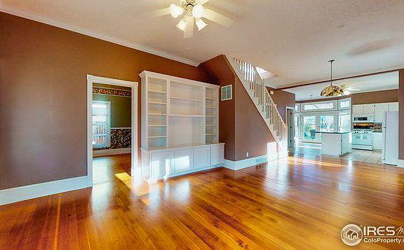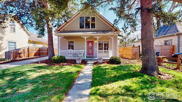 Darling cottage on the East side in Downtown Loveland. This 1901 charmer has fantastic architecture with modern amenities. Master bedroom with en-suite 5-pc bath with jetted tub, and French doors to private balcony. Large kitchen with island and timeless, vintage Tharp cabinets. Main floor bath with 1903 refinished claw-foot tub and intricate molding. Sunny breakfast area with French doors opening to beautiful back yard and deck. Finished, insulated shop/hobby room behind the garage. Fully fenced yard with sprinkler system and shed. New carpet in 2 bedrooms. Furnace and hot water heater replaced in 2014, A/C and humidifier in 2019, microwave replaced 2019. One block from Chilson center and Library. Walk to restaurants, breweries, grocery store. Walk 1 block to Foote Lagoon for summer concerts.