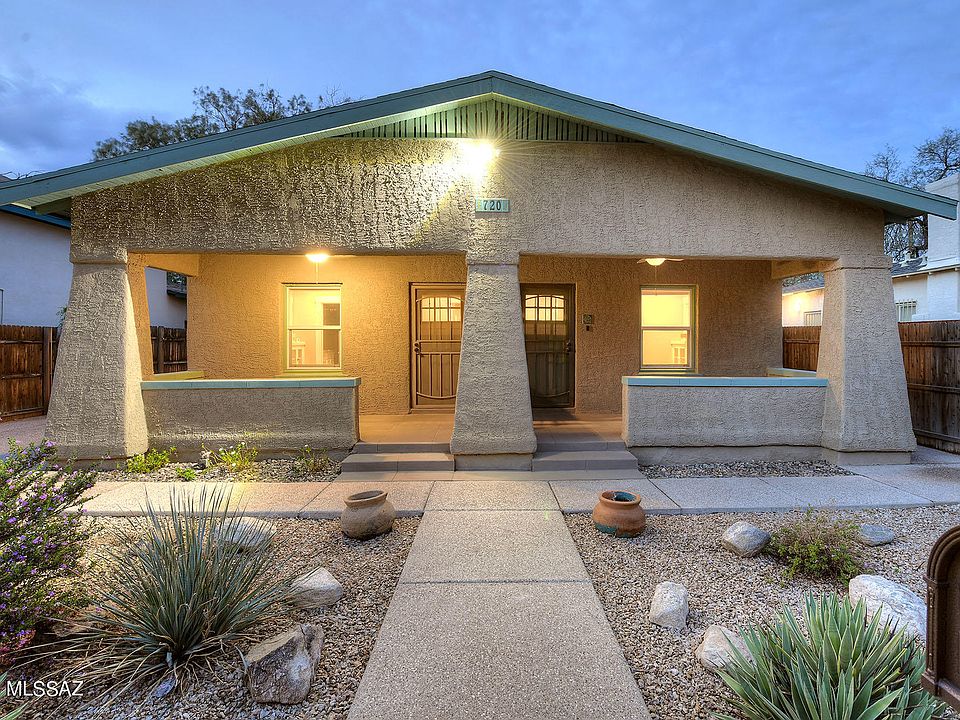 * Located in the coveted Iron Horse Historic District, walking distance to downtown restaurants, Tucson's famous 4th Ave with local cafes/shops, the electric rail & the U of A. This light & bright c.1927 home has been carefully renovated & restored with exceptional attention to detail & design. The natural materials, solid original white oak hardwood floors, solid double-brick construction coupled w/beautifully updated kitchen w/granite counters, Cararra Marble backsplash, SS app, large dining/breakfast room, living room plus 3 bedrooms & 3 full modern baths makes this home your ideal sanctuary. HVAC, electrical, copper plumbing, sewer lines, tankless water heater, low-e windows, LED lighting & 3-car carport all installed 2017. Huge R-2 lot allows for a 2nd structure to be built. Owner/agent