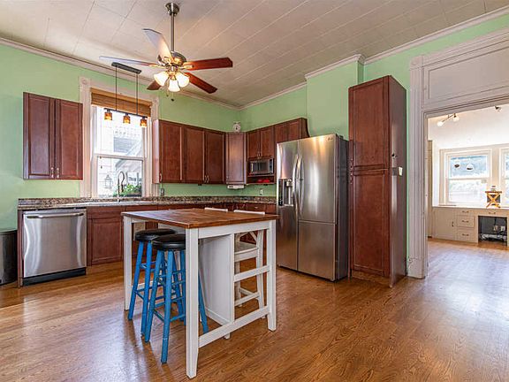 Gorgeous 3-story brick home in East Row Historic District of Newport loaded with character and minutes from downtown! Beautiful, natural woodwork, including original staircase. Large kitchen w/ 42 inch cabinetry, gas oven range and SS appliances. Hardwood floors. Spacious rooms w/ 11 foot ceilings. 2nd flr laundry. 3 finished levels w/ tons of usable living space. Built-ins in Living Room. Large entry off kitchen w/ boxed bay window seat. Off street parking. Large back patio and enclosed breezeway, great for entertaining.