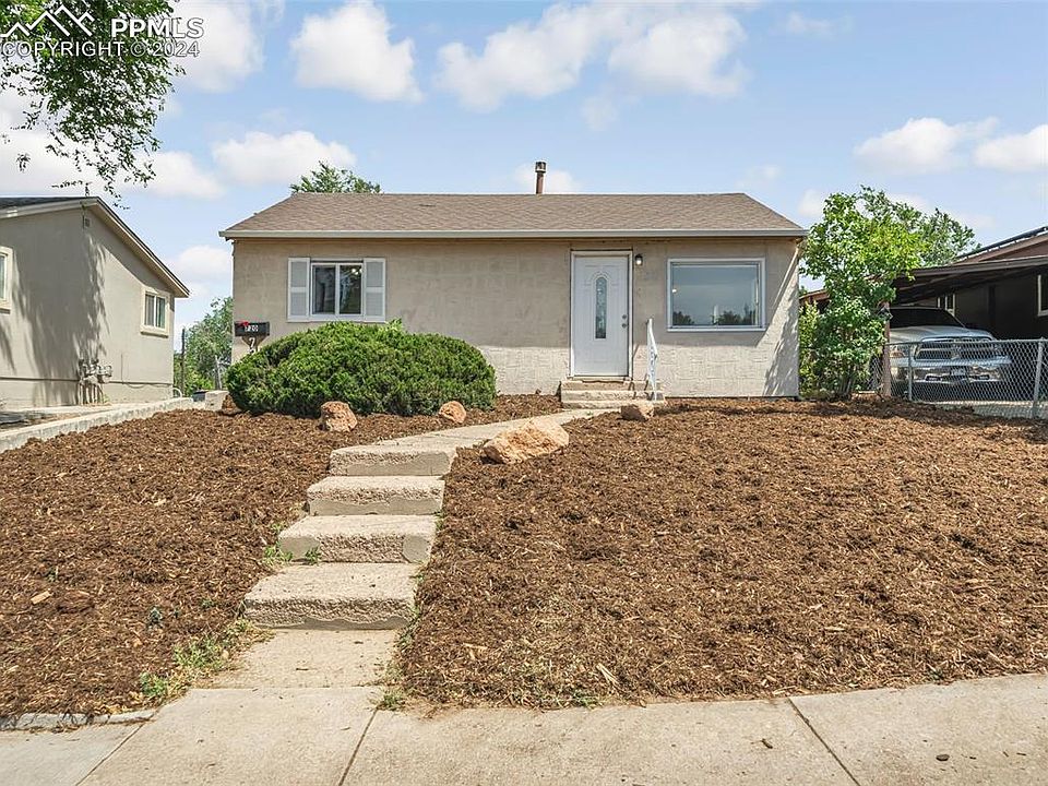 Welcome to this charming ranch-style home with breathtaking views of Pikes Peak. Nestled near Memorial Park and Prospect Lake, this property offers both convenience and tranquility. Inside, hardwood floors grace the spacious living areas, creating a warm and inviting atmosphere. The kitchen features ample cabinet space, perfect for culinary enthusiasts. Two cozy bedrooms provide comfortable retreats, while the well-appointed bathroom ensures convenience. Outside, a large backyard awaits, ideal for outdoor activities and enjoying the stunning mountain views. Don't miss out on this opportunity to own a home in a desirable location with captivating scenery. Schedule your showing today and envision life in this picturesque setting!