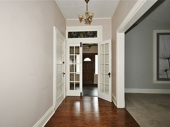 Great opportunity! First floor was recently rented for $850 month (tenant just vacated). Has large spacious rooms with high ceilings. Decorative fireplaces* Updated kitchen w/appliances included* Laundry closet off of the dining area so no need to go into the basement. updated Full bath on main floor! Upstairs needs a full renovation but has so much potential! 1 car detached garage, shed & fenced yard w/patio area. **Newer furnace, dec 2023**updated electric service & Hot water tank