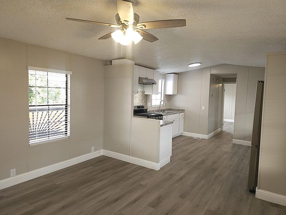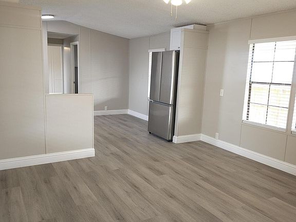 Take a look at this single wide mobile home with 2 bedroom, and 2 bathrooms. This home has recently been updated with new flooring throughout, baseboards, lighting, mini blinds, and new kitchen appliances. Front porch and full length awning.