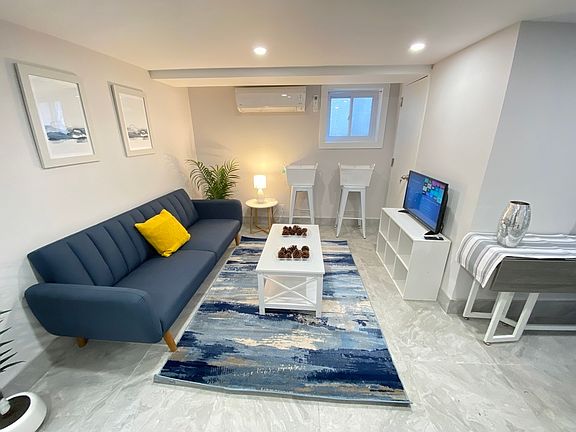 1 MONTH FREE Video tour available upon request! Available September 1st Welcome home to the perfect 3 bedroom 1 bath apartment you've been dreaming of Private, Brand new in fully furnished 3 Bedroom / 1 Bathroom unit in quiet neighborhood. Apartment has been professionally cleaned before and after every stay, and clean linens and towels are provided. -- 3 BED / 1 BATH -- One-month security deposit -- Private garage with driveway also free street parking Spacious beautifully furnished three bedroom/one bathroom floor plans (~1500 sq ft) with your space on separate and other side of the apartment. (see pictures for room furnishings). As far as sleeping arrangements: there are 3 queen sized beds the 3 bedrooms are separate rooms and have full privacy. -- Stainless steel Energy Star appliances, marble countertops, and gold finishes -- Custom hardwood flooring throughout -- Decorative Energy Star lighting -- Luxury Marble Spa Bathrooms -- Spa Shower heads with multiple settings -- 42 inch TV New HDTV with Amazon fire stick with Netflix and Hulu -- Full Backyard -- Bicycle Storage -- Triple inspected and thoroughly cleaned The home also comes with toiletries (shampoo, conditioner, body wash, NO washcloths). -- Hair dryer -- Iron and ironing board -- Toilet paper, Paper towels, tissues -- First aid kit -- Fire extinguisher -- Iron/Iron board Kitchen is fully equipped with marble countertops and new finishes and brand new never used stainless steel appliances -- Pots Pans -- Dishes and silverware -- Microwave -- New Brita Filter Across the street from 2/3 Express trains and walking distance to grocery store, hardware store, gas station, deli, playground -- 10 min drive to multiple shopping centers with Target, Walmart, Home Depot, BJ's shopping areas -- 15 min from JFK Airport -- 17 min from LaGuardia Airport -- 30 min to Manhattan -- Coffee shops and restaurants nearby -- Diverse Ubereats, Seamless, Grubhub food delivery options -- 4 Pharmacies nearby -- Laundry pick up and delivery available -- 24/7 monitoring with Vivint home security system -- 24 hr Security camera as doorbell -- Key less smart security deadbolt locks (keys also available if requested)