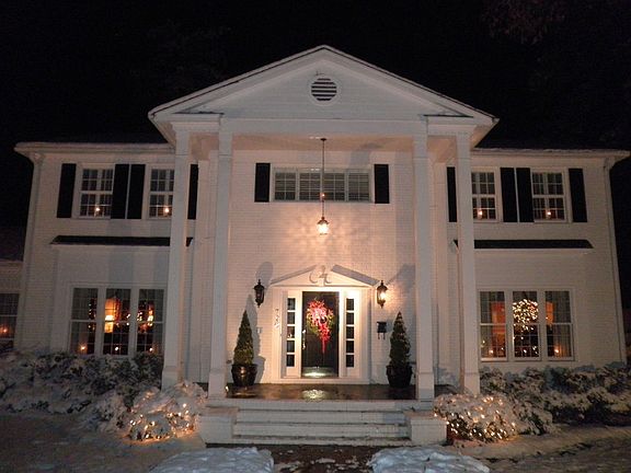 Expansive white colonial on a lakefront lot. Comtinually updated and maintained. Three story home with two kitchens, one off the,pool area for entertaining. Pool is 20 X 42 concrete with black ornamental aluminum fencing and three gates. Pool house with full bath, dressing room heated and cooled. Pool equipment room on one end and a maintenance/workshop on the other. Pool house is a replica of the main house with portico and columns. Large landscaped lot with irrigation system. Extra large driveway with brick border and brick entryway. Slate covered walkways bordered with mature green schrubbery leading to the home. Inside you will find extensive trim detail with transums over doorways, a marble entry foyer and hardwood floors. An eat-in kitchen with lots of room for a big family. The cabinets are custom made solid oak with granite counter tops. All appliances are in matching black and were replaced in 2010. Kitchen and laundry room adjoin with porcelain floors. Upstairs baths were updated with marble floors and tub surrounds. One has a shower and the MB has a jetted whirlpool tub. Large MB with lounge makes a beautiful master suite. Located less than 1 mile from hospital. The home was painted inside and out within the past twelve months. This ia one of a kind home custom built by the present owner and has had only one owner.
