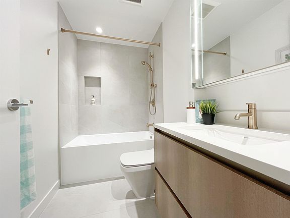 Smith & Farrow by Boffo Developments is perfectly situated in West Coquitlam, just a short walk from the Burquitlam SkyTrain Station and only minutes away from SFU, shopping, and restaurants. This thoughtfully designed 1-bedroom plus den home features 644 sq. ft. of modern living space with air conditioning, 9-foot ceilings, expansive floor-to-ceiling windows, roller shades, and elegant wide-plank European flooring. The contemporary kitchen is equipped with premium Fisher & Paykel appliances and a Bosch dishwasher. Residents can enjoy an array of resort-style amenities such as an outdoor pool, hot tub, rooftop lounge, fully equipped gym, yoga studio, and guest suites. Comes with one parking space and one storage locker