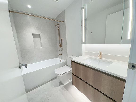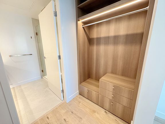 Bright open-concept layoutFloor-to-ceiling windowsHardwood floorModern kitchenHigh-end stainless steel appliancesIn-suite laundryAir conditioning