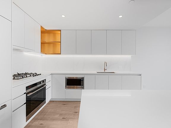 Modern livingBosch dishwasherQuartz countertopsSleek cabinetryAbundant built-in storageFloor-to-ceiling windowsWide-plank flooring
