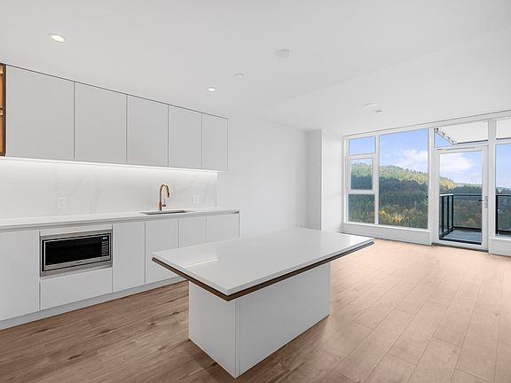 Welcome to Smith & Farrow by Boffo Developments, a brand-new concrete tower in West Coquitlam, just one block from the Burquitlam SkyTrain and minutes from SFU, Lougheed Town Centre, shopping, and dining. This northwest-facing 1-bedroom, 1-bathroom home offers 614 sqft of modern living plus a 124 sqft covered balcony with stunning mountain and city views. The kitchen showcases Fisher & Paykel 30" integrated appliances, Bosch dishwasher, quartz countertops, sleek cabinetry, and abundant built-in storage. Features include 9-ft ceilings, floor-to-ceiling windows, wide-plank flooring, roller blinds, central A/C, and in-suite laundry. Rent includes gas, hot water, EV-ready parking, and locker. Amenities: rooftop lounge, pool, hot tub, gym, yoga studio, and 24/7 concierge.