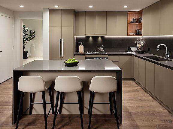 Smith & Farrow by Boffo Developments is perfectly positioned in West Coquitlam, just one block from Burquitlam Skytrain and minutes from SFU, shopping + restaurants. This east-facing 1-bdrm + flex space is a perfect starter home with 650sqft of efficiently designed indoor living + 111sqft covered balcony. Kitchen features full-size 30" Fisher & Paykel appliances, Bosch dishwasher and your choice of custom table at dining or counter height. Enjoy A/C, 9' ceilings, floor to ceiling windows, roller blinds, European wide-plank flooring throughout, and built-in wardrobe systems. Extensive amenities include outdoor pool, hot tub, 46th storey rooftop lounge, gym, yoga studio, guest suites and more. All homes include one EVready parking stall + storage locker.