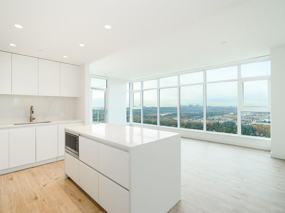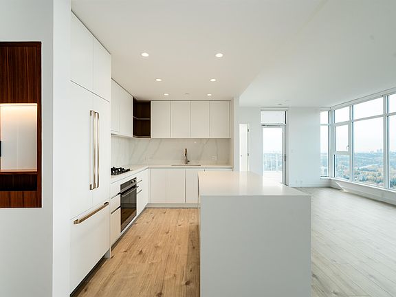 Experience BOFFO's 3 Bed + flex floor plan. Nine foot ceilings and South West views framed by over 37 feet of windows. A/C and Wifi controlled thermostat. Custom entry niche with charging station. Chef's kitchen features 6'island with quartz waterfall edge, full-size 30" integrated Fisher & Paykel/Bosch appliance package with 5-burner gas cooktop. Wide-plank European flooring. Master retreat features built-in wardrobe, frameless glass shower and heated tile floors. Elevate your lifestyle with over 13,000 square feet of indoor amenities including rooftop lounge and fitness centre PLUS and OUTDOOR swimming pool, games room and canopy-covered dining. Walking distance to Skytrain Station. Come and check out the views! Move in ready! Best deal in the entire building!Open Sunday 2-4pm