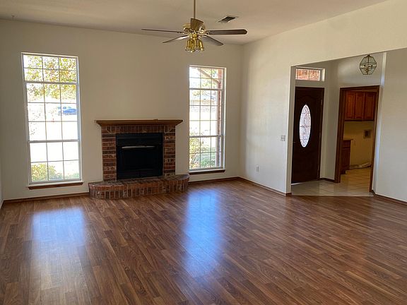 Charming 3 bedroom, 2 bath home on cul-de-sac. This home features LVP flooring and fresh paint throughout, high ceilings, ceiling fans, huge closets and plenty of storage. Kitchen has a breakfast nook and comes with stove/range, dishwasher, and built in microwave. Large living room with gas fireplace and adjoining dining area. The master suite has a full bath with shower and tub, built in chest of drawers and large walk in closet. Backyard has covered patio and is fully fenced. Pets are welcome with prior approval and pet fee. Ask listing agent for more details. 1 year lease Tenant is responsible for lawn maintenance and all utilities.