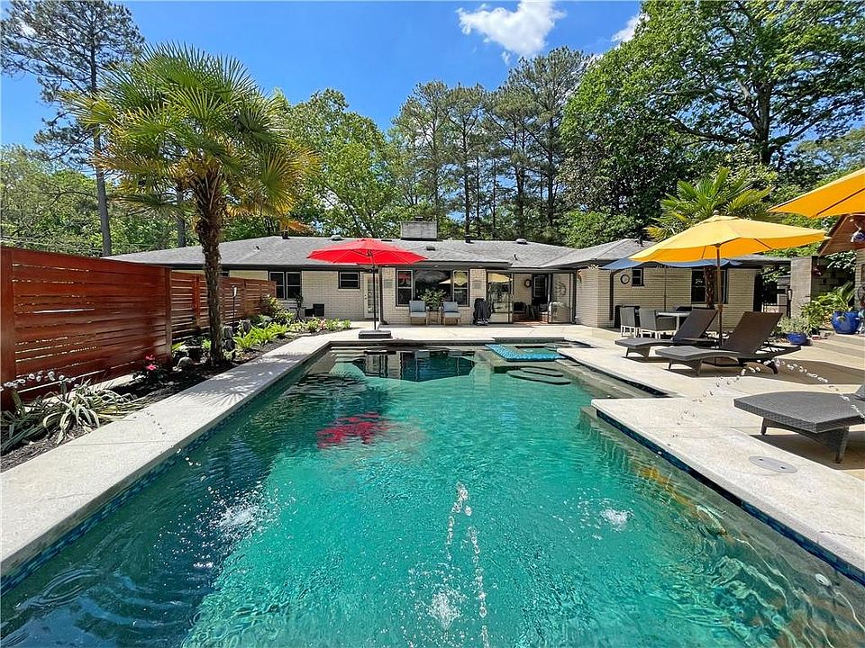 A true oasis in the heart of intown Atlanta, this sprawling 1964 mid-century modern residence offers abundant space and a wealth of tasteful, period-appropriate details and updates. The home boasts quintessential MCM features such as a wide, flat brick exterior, bespoke built-ins, expansive windows flooding the interiors with natural light, and multiple living areas with a flexible layout, gifting this special property's next owner personalized customization. Upon entry, a formal living and formal dining area awaits, ideal for hosting gatherings. The kitchen has undergone a complete renovation, showcasing a sizable island for seating and an adjacent casual dining space. The residence is ingeniously designed with a split-bedroom plan, providing a luxurious guest wing with its own exterior access, perfect for accommodating visitors or serving as dual home offices. The southern wing houses the serene owner's retreat, complete with a spa-like ensuite bathroom and a customized walk-in closet. Two additional bedrooms share a striking MCM bathroom featuring an original corner tub and an eye-catching chandelier. Transitioning through the family room, the glass sunroom beckons, leading out to the inviting California-inspired patio. Here, a heated saltwater in-ground pool, hot tub, fire pit, and an original tiki-style cabana with wet bar await, creating a jaw-dropping setting for outdoor living and entertaining. For added value and convenience, the lower level offers ample finished storage and a ready-to-go 1 bedroom/1 bathroom income suite with separate exterior access, seamlessly dividable from the main house. Nestled on nearly an acre of land within Atlanta city limits, the property also features a vast fenced grass backyard and a spacious separate garage with RV hookups and ample workshop and storage space. In addition to its remarkable features, this home boasts a prime location within the sought-after East Atlanta Village neighborhood, placing it within walking distance of an array of restaurants, shops, and bars. Despite its proximity to the vibrant neighborhood scene, the residence enjoys a tranquil setting on a quiet stretch of road. Plus, its convenient access to I-20 and downtown Atlanta ensures seamless connectivity to the city's bustling attractions. Just a 10-minute drive from midtown and the airport, this home offers the perfect balance of urban convenience and suburban serenity, making it an ideal retreat for those seeking the best of both worlds.