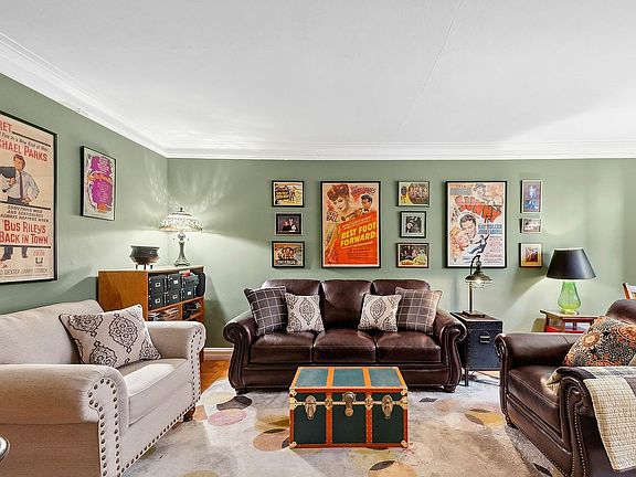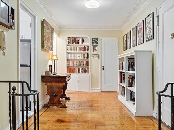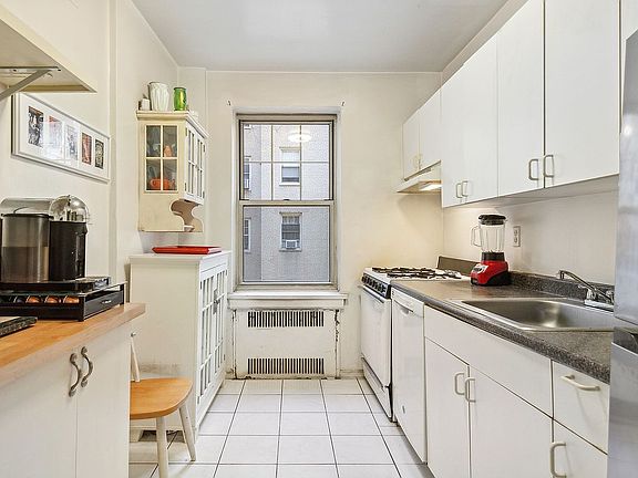 This large RAISED first floor one bedroom offers incredible space and solitude for those seeking a peaceful respite from the city grind. Enter a welcoming foyer perfect for dining or home office adorned with Deco arched built-ins for your books and collectibles. Step down to the generous sunken living room overlooking the building’s private, interior sitting garden with space enough for separate dining and conversation areas. The windowed galley kitchen awaits your updates, but wow, such great space! There is even room for a small bistro table depending on your new design. The huge corner bedroom rests quietly away from the entertainment space and boasts a wonderful corner window with pretty leafy views in summer. The vintage bathroom is done in blue and black ceramic tiles and the soaking tub has a glass shower door surround. Throughout are 4 generous closets, hardwood floors and 3 exposures.