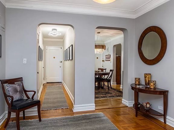 No showings before Sunday, April 24th One of Kind Home Stunning, elegant and spacious - this home is a true gem! Nestled away in the heart of Hudson Heights and nearly 2013 square feet, this apartment has unusually wide hallways, multiple exposures and feels more like a single-family home, rather than a NYC co-op apt. This expansive seven and a half gem includes 3 bedrooms and 3 bathrooms, formal dining room, an office/ den and 9 closets (two walk ins), and a bonus storage/Dressing space that is open to interpretation! A gracious entry hall leads into a large and elegant foyer with original built-in bookshelves. The sunken living room faces west and overlooks the beautiful tree-lined Fort Washington Ave. One wing of the home boasts an oversized corner primary bedroom with en suite bath and a large second bedroom(currently used as an office/yoga space) with a bathroom off the hallway. The windowed kitchen has top of the line appliances, plenty of cabinets, storage, and prep space. This is a spacious kitchen with a large breakfast bar that could easily accommodate a corner banquet or whatever you desire. Off the formal dining room is currently a home office / den with another full bathroom and large bedroom with a corner window. In addition to the tasteful and classic renovation, the electrical has also been updated throughout the apartment. All of this and sophisticated Art Deco crown moldings, almost 9' ft ceilings and beautiful hardwood floors throughout. This is a large home that has multiple rooms with multiple options! Don't miss this wonderful opportunity to purchase your forever home in the heart of Hudson Heights. Museum quality classic 1939 Art Deco building, wonderfully maintained and friendly coop. The amenities in the building include fitness club ($240/yr), storage facilities (WL), two laundry rooms, private courtyard garden, two bicycle rooms and a security guard(PT). Situated only a few steps from majestic Fort Tryon Park with famous vistas of the George Washington Bridge spanning the Hudson River, three seasonal gardens, wooded promenades, terraces, eight miles of pedestrian paths and the world famous Cloisters Museum (part of the Metropolitan Museum of Art). This terrific property is nearby playgrounds, parks, restaurants, shops, schools and parking garages. The A train is steps away to take you to Midtown in 20 minutes. Pets are welcome!
