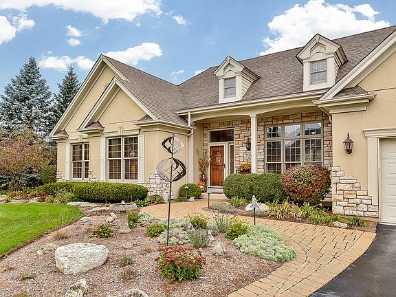 Eleven foot ceilings greet you into incredible RANCH home within walking distance of downtown Geneva! Airy & bright family room with vaulted, 11ft. ceiling & double sided gas burning fireplace. Expansive kitchen with abundant, cherry cabinetry, granite counters, pantry, island & eating area with incredible views of your private backyard. Enjoy a morning cup of coffee cozied up by your double sided fireplace. Formal dining room offers the perfect setting for your family dinners with 11 ft. ceilings & crown molding! Gorgeous master suite with his n' hers walk-in closets & sitting area. Private master bath with double sinks. Additional, spacious bedrooms, hall bath & linen closet complete this main level. Fourth bedroom could be used as an office. Unfinished basement spans the width of the main floor with a bathroom rough in. Picture perfect, fenced in yard with Trex deck, brick paver patio, hot tub & fenced yard. Now is the time to make this perfect ranch yours!