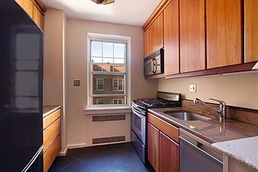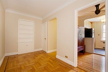 This is a quiet, top floor, spacious one-bedroom in one of Hudson Heights' premier Coops. It features large rooms, high ceilings, hardwood floors, and an elegant layout. The large foyer, with a built-in (deco) cabinet, leads to a sunken living room. The Kitchen, with enough space for dining, has cherry cabinets, stainless steel appliances, and custom tile-work. The bedroom is airy and bright and the bath has been tastefully updated. This Art Deco Building sits at the edge of Fort Tryon Park and the Heather Gardens, and features a restored Deco Lobby with a fabulous WPA mural. (The Lobby has been featured in several TV Shows.) 720 Fort Washington is just two doors away from the subway and Fort Tryon Park, has laundry, gym (fee), bike room and storage bins (fee), a landscaped center courtyard, and is also pet friendly. It is meticulously maintained by several porters, a live-in Super and a Handyman. This area of Fort Washington Avenue, surrounded by Parks and green space, has a surprising suburban feeling with all the advantages of city living.