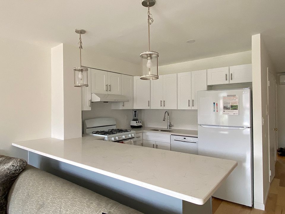 This unit was fully renovated in 2022, featuring a remodeled kitchen with a new granite island, new wooden floors, new appliances including dishwasher, fridge, oven, and microwave/hood fan, a renovated bathroom with new vanity, medicine cabinet, and hardware, and new blinds. Only one set of tenants have occupied the unit since renovation.
