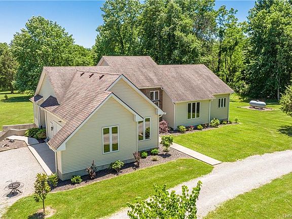 A Show STOPPER! Checks all the boxes. 23.86 Ac. Approx. 15 Ac woods- Over 3200 TFLS. This 5 bedroom, 2 bath ranch features a finished w/o basement, large eat-in kitchen with breakfast bar and formal dining room. Lg Living room w/ fireplace. The formal dining room and master br opens to a spacious concrete stamped deck 63' x 24'. The 3rd br opens to the master br. and 4th and 5th brs. (non-conforming) are located in the finished walk-out basement. Both have a walk-in closet located just outside the br door. The lower level showcases a 38 x 20 open family room and a separate game/rec room. 2 car attached garage. 80 x 40 pole barn with concrete floor, 200 amp elec, insulated workshop and a lean-to, stock pond. Potential for a building lot on either side of the drive. Buyer to verify with planning and zoning. All sizes are approximate if critical; buyer to verify. interior pictures will be loaded on Friday.