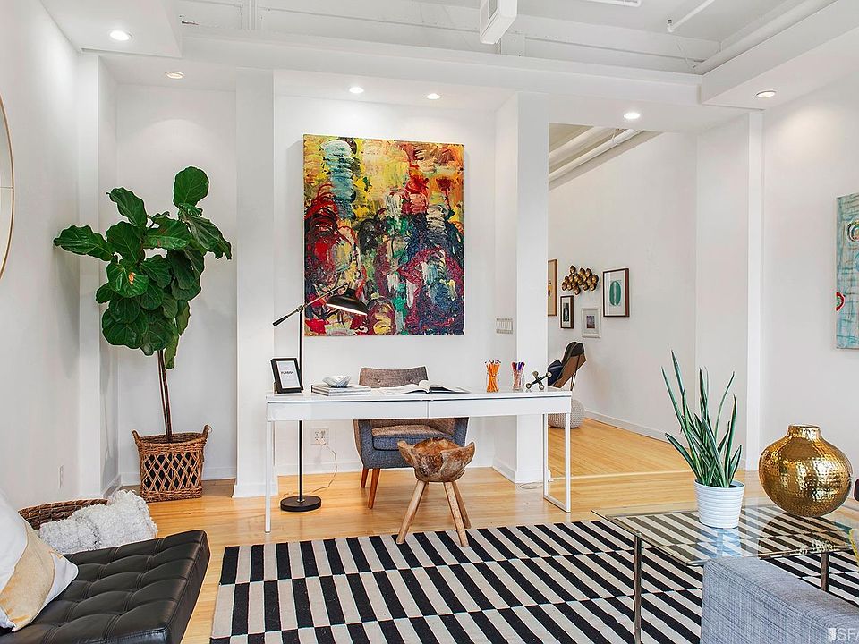 Hip Berkeley LIVE WORK LOFT. Freshly painted, refinished floors, MOVE IN condition. At 1592 sq ft per tax records, this 2BD/1.5 BA loft has soaring ceilings, tremendous light, a private patio, and comes with 2+ car dedicated parking. High end appliances include a gas stove, full size side by side in unit washer/dryer. There are two street entrances, a real plus for those who work at home. Part of the historic Tannery, this loft is In a small, eight unit stand alone building, Located in Berkeley's desirable Oceanview district, the walk score is 73 and the bike score an enviable 98! Across the street is the last stop of the H bus before it heads to the SF TransBay terminal, some 20 minutes away.