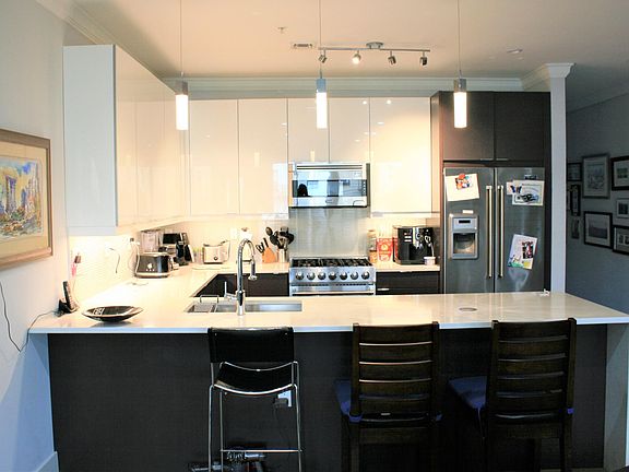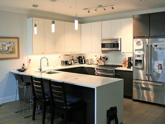 Absolutely amazing true 4 bedroom 2 bath over 2000 sq ft spead out over 1 floor. This unit features very large open living/dining area with large 120 sq ft private balcony off the living room. the Kitchen features stainless appliances and ample storage and is divided from the living/dining area by a beautiful white quartz water fall island. Massive master bedroom with plenty of room for office and siting area features an en-suite bathroom with double vanity and large stand up shower. On the other side of the condo are the other 3 full size bedrooms each with abundant closet space. One of the additional bedrooms features a private deck and murphy bed. 1 deeded garage parking spot and 1 private storage closet included! There is also has a shared yard for building residents. This one of a kind unit must be seen to be truly appreciated.