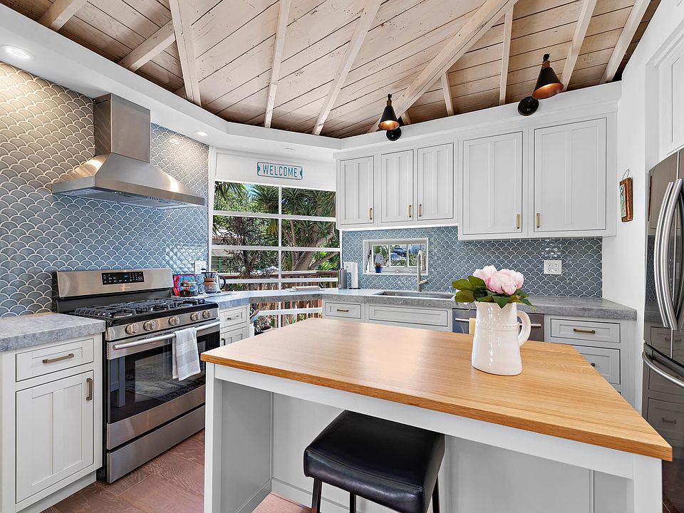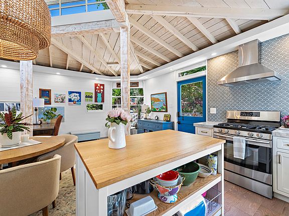 Owner will do long term This property is perfectly situated at the end of two cul-de-sacs offering the ultimate in secluded privacy! This 2 bedroom 1 bath detached home sits at the top of the property with stairways and easy paths leading to the front Dutch door. The light and bright home features white washed ceilings and large windows. The kitchen is remodeled with stone counters, stainless appliances and white cabinetry. The spacious remodeled bathroom offers dual vanity and custom floor & shower stone/tile. Enjoy the sunset and distant ocean views from both bedrooms. Indoor private laundry. There are multiple outdoor areas for relaxing and entertaining. This is a must see! Pet cleaning $100 Extra $200 max electric Smart TV only and Internet