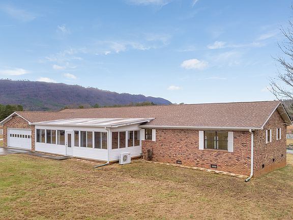 14 CLEARED ACRES WITH MOUNTAIN VIEWS, 3500+ SQ FT, BRICK RANCH...The open living room with a gas fireplace, kitchen, and dining room make entertaining a delight. A huge master bedroom features walk-in closet with dressing room, vanity and separate bath with walk-in shower is sure to please. Three additional spacious bedrooms each with its own walk in closet allow for plenty of room for the whole family! Enjoy the outdoors from a detached deck that offers panoramic mountain views or if the weather isn't cooperating enjoy the views from one of the two sun-rooms! A separate single car garage with workshop, roll-up door, and equipment shed are ideal for all your farming tools or toys! Move right in, relax and enjoy all this home has to offer.