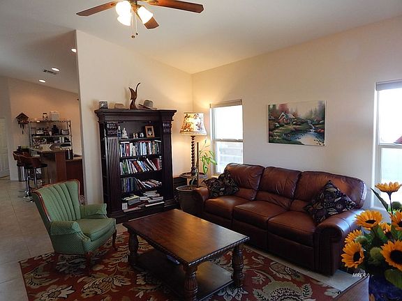 This property is a gem. Only 5 years old and it offers a 3-Car garage with a concreted driveway to covered RV/Motorhome parking in a rare non HOA subdivision. All kitchen appliances are included along with the washer/dryer. Modern granite countertops in the kitchen, 3 security screen doors that access the back patio from the bedroom, the covered R.V. storage area from the kitchen and of course the front entry door. The window blinds are insulated, 3 ceiling fans, water softener and R.O. systems are all included. Architectural design incorporates dramatic high ceilings, Large tile in living areas and carpet in the bedrooms.