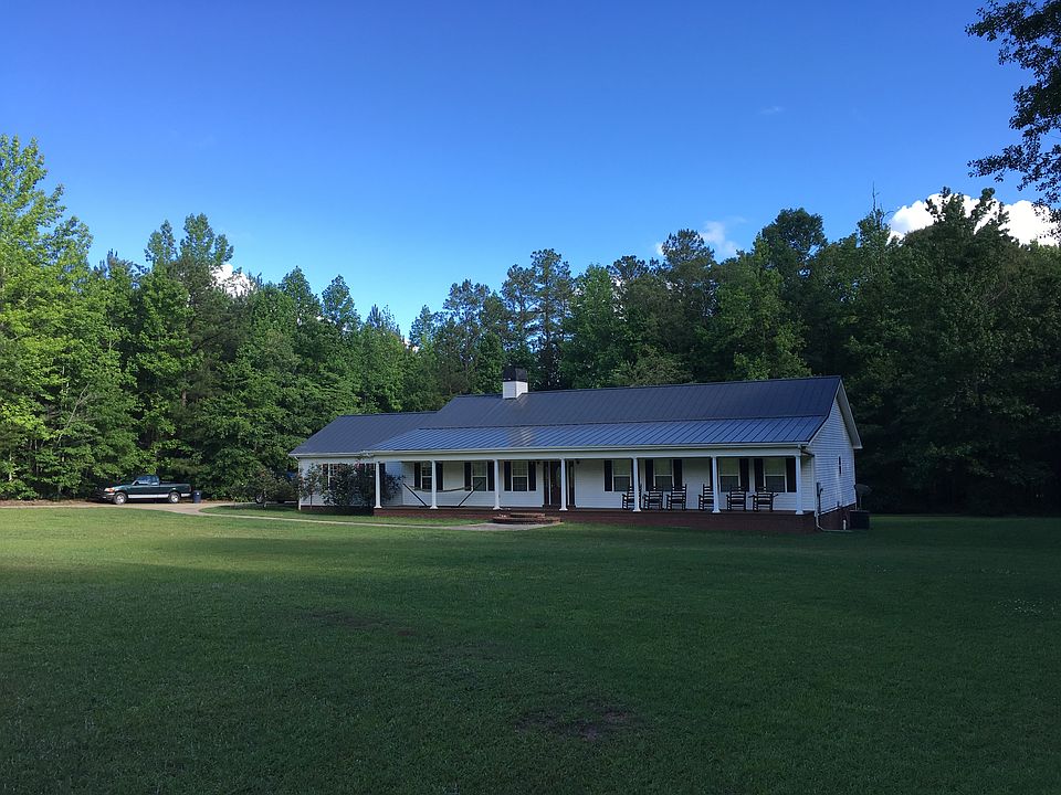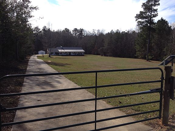 Custom Built Home in Western Coweta County. Very well maintained home on 4.27 acres surrounded on all sides by large tracks of wooded land. This home is a must see to appreciate all the extras. Power gated with 600 feet of paved drive off Handy Rd. 3 bedrooms, 2 full bath, and an office that can be used as a 4th bedroom. There is an attached 24 x 22 double garage, and a shop and storage building with 20 foot awning and lean to for wood storage. Travel Trailer parking area, and 30 x 20 pet pen. Enjoy front porch that extends the entire length of home with two decks on back. Master bedroom is 17 x 20 with tray ceiling, two walk-in closets, and French doors that lead out to one of the decks on back of house. Master bath has tiled flooring, tiled stand up shower, garden tub, double sink vanity and walk in closet. Both bedrooms are 15 x 12 with walk in closets and inserts for desk or TV centers. All rooms are wired for cable and telephones. 43 inch Lenox stacked stone fireplace with powered fan for heat circulation. Pecan Wood hearth carved from a pecan tree a few miles from home. Lament wood entry to 24 x 20 living room. Kitchen has cherry wood cabinets, tile back splash above counter tops, and commercial exhaust fan above double stove. There is wood lament flooring in both kitchen and dining room; Insert in dining room for china cabinet also. Over sized laundry room with tile flooring, utility sink, and cabinets above washer and dryer. Front half of property is open yard and back half is wooded. There are two deer stands on property with plenty of deer and other wild life. Hard wood flat that leads down to scenic creek on back of property. Existing ATV trails in woods behind house. 45 mins from Atlanta Airport and West Point Lake, and an hour from Lake Wedowee.
