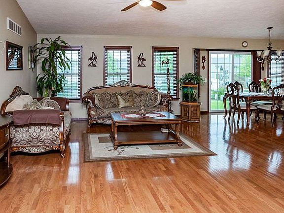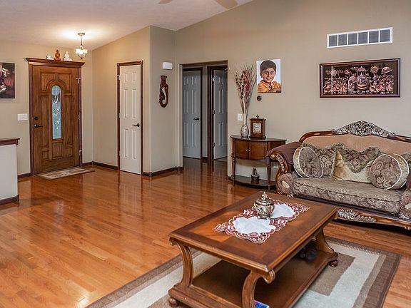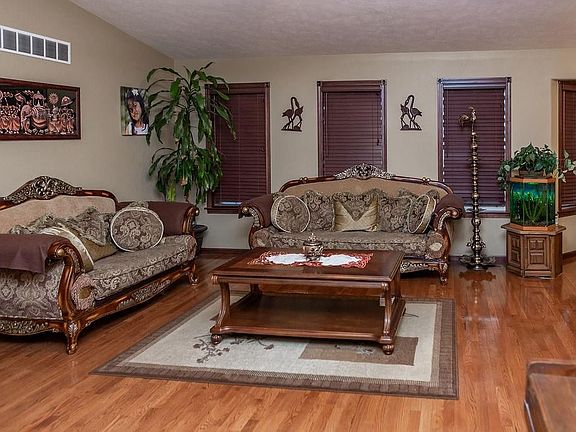 Wow what a nice property! Who do you know that is looking for a 5 bdr, 3 bth home on a nice quiet cul-de-sac lot. This home includes many extras. One of the first you will notice when you open the front door is the open floor plan and includes beautiful hardwood flooring in the main area of the home. Awesome cherry kitchen cabinets, granite counter tops, stainless steel appliances is another. You just don't find cherry cabinets in this price range often. The split bedroom plan includes a nice sized master bedroom w/ walk-in closet and master bath with dual sinks, jetted corner tub and separate shower. 2 nice sized bedrooms with bath between accent the opposite of the home. Laundry room is also located on main floor. The basement is completely finished with huge family/rec room with amazing wet bar, 2 large bedrooms and 3rd bath. There are several upgrades to the inner workings of the home including water softener w/ Reverse Osmosis system, built-in humidifier and nice energy efficient all electric HVAC system. Outside you will find a nicely landscaped entrance and full yard sprinkler system.