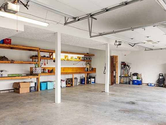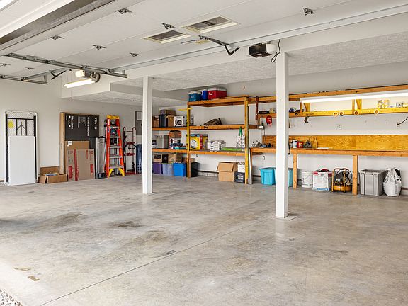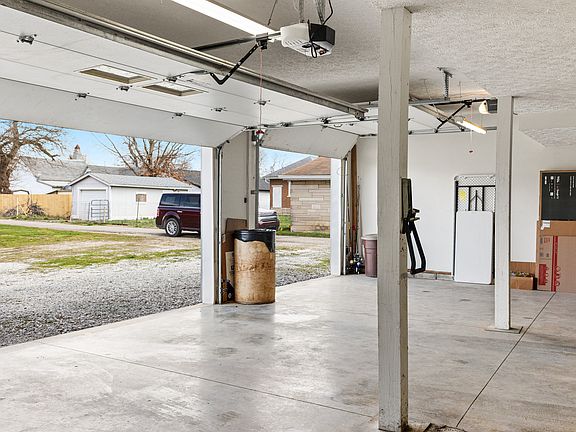 Welcome to your dream property! Nestled in the heart of town, this unique 2-bedroom, 1-bathroom home offers the perfect blend of charm and functionality. Upon arrival, you'll be greeted by a spacious driveway leading to an impressive 3-car garage, with 1/2- bath featuring large sink for your outdoor needs also providing ample space for all your workshop projects and storage needs. Adjacent to the garage, you'll discover a convenient pole barn, offering even more storage solutions for your belongings. Whether you need space for outdoor equipment, seasonal decorations, or hobby supplies, this property has you covered. Ascending the stairs, you'll enter the cozy living space, featuring an inviting eat-in kitchen with bar, and an open living area ideal for relaxation and entertaining. Natural light floods the room, creating a warm and welcoming atmosphere for you and your guests. Safety and security are paramount, and this home comes equipped with hard-wired security features, offering peace of mind and protection for you and your loved ones. Furthermore, the property boasts a generously sized alley, providing easy access for larger vehicles, trailers, or RVs. Don't miss out on this opportunity to own a truly exceptional property that combines comfort, convenience, and plenty of storage space. Sale includes all appliances including full size washer/dryer combo. Schedule your viewing today and make this unique home yours!