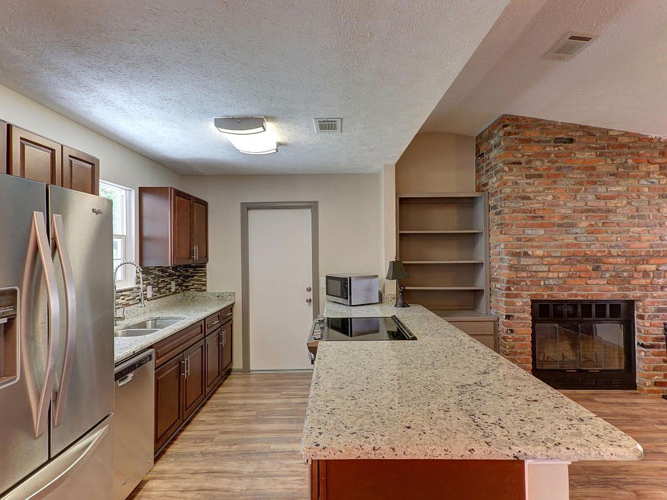 Complete gorgeous modern remodel. 3BR/2BA in nice neighborhood. All new stainless steel appliances and granite counter tops, new heat and air, new carpet and new beautiful weathered wood laminate flooring, new double pane vinyl windows. It also has a wood burning fireplace, privacy fenced back yard and double car garage.