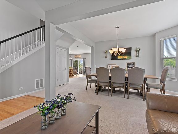 Welcome to this in town, 3183 square foot home with open floor plan! As you step into the entry you are greeted by a 2-story foyer with chandelier, 9ft ceilings thru-out main level, a formal living room and formal dining room with bay window. The large kitchen offers 42" white painted cabinets, quartz countertops, ss appliances, hardwood floors and a center island with breakfast seating. The casual dining area overlooks the huge family room with wood burning fireplace. There is also a first floor den, powder room and a mud room leading to the 3 car heated garage. The second level of the home includes a huge Primary Bedroom Suite with double door entry, vaulted ceilings, a private sitting room, perfect for a 2nd floor office or nursery plus a luxury bath featuring comfort height dual vanities, his and hers closets, large corner soaker tub, separate shower and ceramic tile floor. 3 additional bedrooms, all with ample closet space, a large loft, great for kids play/entertainment space and a convenient large 2nd floor laundry. Additional living space awaits your personal touches in the unfinished partial basement. Spend wonderful family time in the gorgeous back yard with large brick paver patio, wall seating, wrought iron fence and storage shed, all on a 1/3 acre professionally landscaped lot! Full cement driveway. Hampshire Schools. Enjoy Hampshire with all its charm, dining and shopping. Easy access to Rt. 72 and I-90. You will simply love the floor plan and space in this home! Come take a look!
