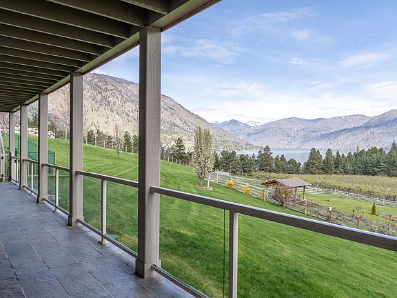 Uncompromised views of Lake Chelan and the surrounding mountains greet you from this impeccable 3 bedroom 3.5 bath home. 2700+/- square foot barn with heated tack room, bathroom, loft, 3 horse stalls, plumbed for possible kitchen area, and RV parking. Main home features vaulted ceilings with exposed timber beams, gas range, large master suite with jetted tub, covered slated deck and patio, built in sound system, den/office, gas fireplace, and media room. Excellent equestrian property.