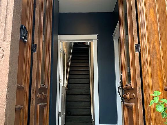 Bright and airy 2 bedroom apartment located in a historic brownstone on a quiet and friendly tree-lined street in Stuyvesant Heights. Convenient access to the A/C and J/Z trains, and close to the amenities of Malcolm X Boulevard (grocery stores, bars, restaurants, etc) and a coffee shop down the block (Passionfruit). Apartment is on the 2nd floor and has a private stair entry with skylights. The entire apartment is recently renovated, with new windows and new wood floors throughout, central A/C + heat, and natural light in every room. The living area is the full width of the house, facing the street, with space for an L-shaped sofa and dining table. The kitchen has new Samsung appliances (stove, built-in microwave, dishwasher, fridge/freezer), along with a washer & dryer. The bedrooms are generously proportioned, with built-in closets. The primary bedroom faces south, overlooking the backyard, and is very quiet. We're the property owners who live downstairs with our child. We charge no broker fees. Rent is inclusive of water. Tenants would be responsible for gas and electricity. We require a security deposit and minimum of a year lease. Building is smoke-free. Available now or October 1st