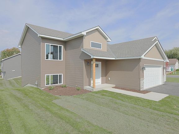 Quality shows through on this rare new construction home available in Winsted. Your first steps show a large foyer offering a wide staircase. The main floor hosts vaulted ceilings, living & dining room spaces and a kitchen island. The kitchen offers a gas range, tall cabinets, granite counters and stainless GE appliances. Both bedrooms have walk in closest with a double vanity sink in the primary suite. The lower level's family room has room for any event and walks out to the open back yard. A third and fourth bedroom is also offered along with a 3/4 bathroom and laundry in the utility room. Other features of the home include large windows, marble top vanities and laminate wood flooring. The entire yard has fresh sod and the front is landscaped. Make this yours!