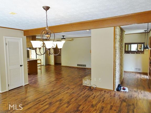 Full brick 3BR/2BA ranch on 1.5 acres w/ private pool. Open floor plan. Foyer entrance, GR w/ stand-alone masonry FP, open kitchen w/ dining area and breakfast bar, vaulted screened porch w/ pool views. Vaulted owners suite w/ private deck access, walk-in closet, and spacious bath w/ garden tub and separate shower. Two secondary bedrooms share a full, hall bath. Sun porch overlooks fenced yard and creek. Partial basement. Two-car garage. Needs some TLC. Desirable neighborhood just east of Covington City Limits w/ voluntary HOA and swim/tennis.