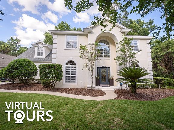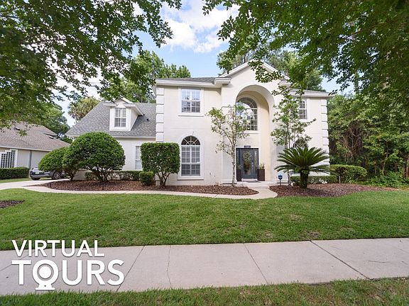 Luxurious 5 bd/ 3.5 ba two-story home with incredible backyard oasis in excellent Ponte Vedra Beach location. With a gorgeous exterior and meticulous landscape, you enter the home along the paver pathway and arched entryway, and you are brought into a high-ceiling foyer with beautiful hardwood flooring throughout the first floor. The open-concept layout flows throughout the ground floor, and you'll find a roomy office with great natural light to your right. To your left is the formal dining area; it has a contemporary lighting fixture and is perfect for sharing a meal with guests. Passing the staircase, you're ushered into the modern kitchen featuring beautiful quartz countertops and comes equipped with stainless steel appliances, ample counter space and breakfast bar, and lies adjacent to the bay window-illuminated informal dining area. The living space rounds out the bottom level; it features a cozy wood-burning fireplace, plenty of room for soft seating and sliding door access to the pergola. The bedrooms are on the second level, highlighted by the spacious primary suite which offers a gorgeous ensuite bathroom, complete with a standing corner shower, detached soaking tub, impressive vanity and massive walk-in closet. The secondary bedrooms offer plenty of space for hosting guests or repurposing as a home office, and one also offers a full ensuite bathroom. Out back, you are treated to a perfect tropical retreat -- it boasts an impressive in-ground pool and hot tub, a covered pergola and deck, all screened-in to keep out insects. With an outdoor grilling area with plenty of seating, this spot is perfect for entertainers. Washer and dryer will convey; brand new washing machine.Other features: Central A/C, forced air heating, two-car garage, laundry room, Nearby: Sawgrass Country Club, Guana River Wildlife Management Area, Mickler Beach, local shopping and dining, easy access to A1A, short commute to Jacksonville and St. Augustine. Buyer to verify all information.