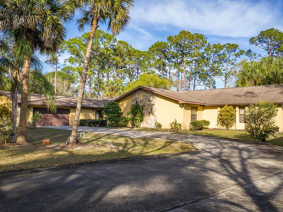 4 BEDROOM + OFFICE, 2 BATH, 6 CAR GARAGE, nearly 2400 sqft ONE STORY home, with a HUGE POOL + SPA, on OVER 1 ACRE of land. NO HOA and NO DEED RESTRICTIONS. Detached 2-CAR garage (with ELECTRIC) fits a BOAT or small RV. Updates and NEW: ROOF (2009), A/C (2011), WATER HEATER (2018), master BATH (2014), DELTA SHIELDS Spray Kitchen FAUCET (2018), CHERRY CABINETS and CORIAN countertops (2010), ENERGY EFFICIENT DOORS (2013 and 2016), KOHLER TOILETS (2016), POOL CLEANER (2018), WASHER and DRYER (2011). Minutes from I-95, US 1, shopping, churches, and restaurants. A-RATED SCHOOLS. Home is NOT IN A FLOOD ZONE. Chickens and HORSES ALLOWED! Enjoy COUNTRY LIVING and the LOWEST TAXES in Brevard County. Only a 5 minute drive to Northrop Grumman, Harris, and Embraer. About 10 minutes to the BEACH! Ideal family location.