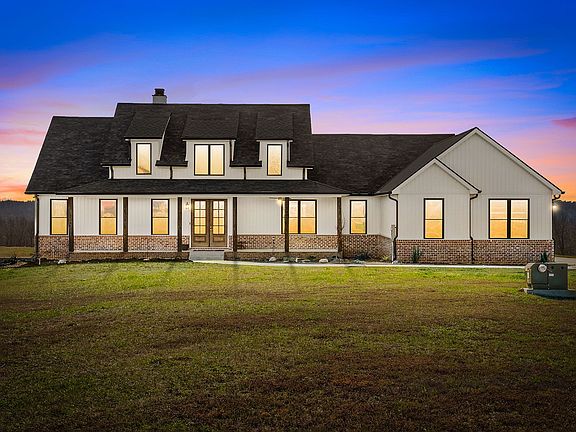 Welcome to your private estate on 47 Acres! Custom built in 2024; this sprawling 2,799 SqFt ranch home is beautifully surrounded by acres of hardwoods and is set back from the road for ultimate privacy. French doors welcome you into the vaulted entryway. A flex room, perfect for a home office or formal dining room, is conveniently located off the entryway. Luxury vinyl floors flow from the front door into the spacious living area where wood beams and a brick fireplace accent the space beautifully. Two sets of French doors allow the best view of your acreage, oversized back porch, back patio and backyard. The chef’s kitchen is adorned with a Thor double oven gas range with griddle, pot filler, large farmhouse sink and an extra-large island with storage and a built-in microwave. A large open dining area and walk-in pantry with custom door complete the open-concept space. The primary suite features a wood beam to compliment the vaulted ceiling, French doors to the back patio, two large walk-in closets, and luxury vinyl flooring while the primary bathroom boasts separate vanities, extra storage cabinetry, tiled shower and a free-standing tub with surround tile. Bedroom two features its own full bathroom, perfect for guests, while bedrooms three and four share a joined full bathroom. The main level is completed by a half bath, a tiled laundry space with sink and extra storage cabinetry and a three-car garage. Outside you will find a giant covered deck with propane line installed for a grill, and a large patio. The home features a tankless hot water system, full home filtration system and downstairs, a full unfinished walkout basement (2,799 SqFt) with plumbing for future bathroom. The property has an abundance of deer and wildlife and is in greenbelt to help save on property taxes. The large 30x50 (1,500 SqFt) shop/barn has all the space you will ever need for equipment storage. Home recently appraised for $1,425,000.00.